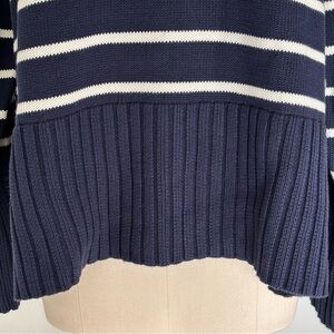 Gap 24/7 Split-Hem Crewneck Sweater NWT Cotton Navy White Stripe L