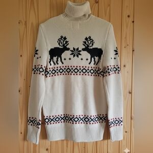 Men's H&M Cream Turtleneck Sweater with Reindeer Design, Thick And Warm