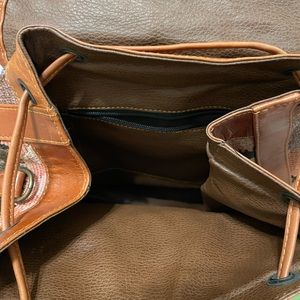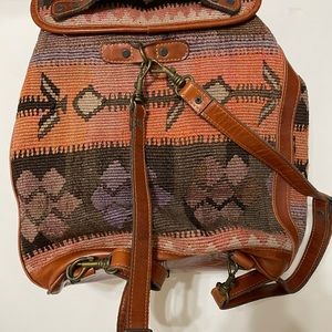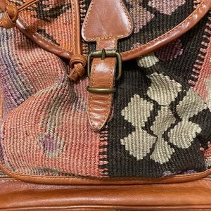 #Vintage #90s #Unisex #Boho #Artisan #Cotton #Woven #Aztec #Dhurrie and #Leather #Backpack