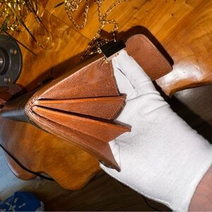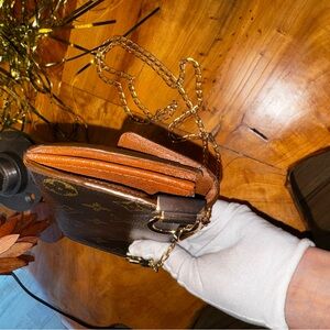 This wallet has been converted into a wearable purse and comes with an unbranded 47‑inch gold chain and unbranded hardware.