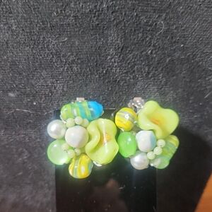 Add a pop of color to your outfit with this elegant lime green acrylic beaded necklace. Perfect for any occasion. This is a Western germany piece that comes with a set of matching earrings. Necklace measures fifteen inches into the smallest strand