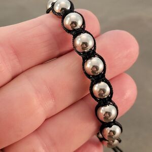 New without tags silver 8mm stainless steel beaded unisex bracelet with an adjustable cord. Once adjusted to the wrist the bracelet stays in place. The stainless steel beads are solid. The piece has a nice overall weight and will never tarnish.