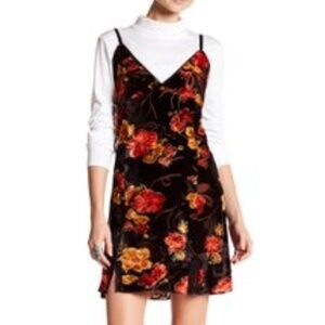 Angie women L floral burnout velvet slip dress sheer sleeveless, 68% polyester, 24% nylon, 8% spandex.