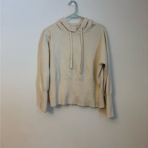 Cozy cream hoodie with drawstring. Soft fabric. Relaxed fit. Has some pilling and could stand to be sweater-shaved, but otherwise decent shape.