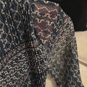 This elegant long sleeve dress features a beautiful blue pattern, perfect for any occasion. Its flowing design offers both comfort and style.