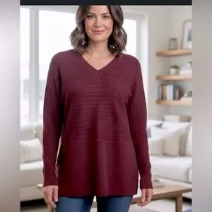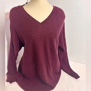 NWT Lord & Taylor New Deep Burgundy V-Neck Structured Top Large soft stretchy