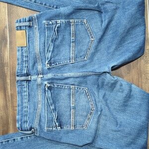 Classic blue denim with a mid-rise fit. Super stretch. 29x32
