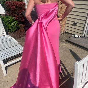 Elegant strapless design. Bold pink hue. Perfect for formal events. The Kinsley Maxi Dress in Rose Pink