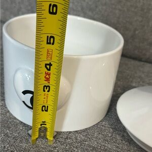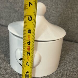 Chic white jar with heart design. Features iconic Chanel logo. Ideal for storing cookies.