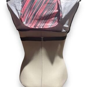 Yonique Racerback Tankini Workout Top Pink Stripe Large