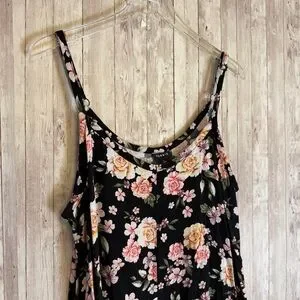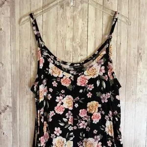 Torrid size 2X black and pink floral sleeveless dress with adjustable straps and side pockets.