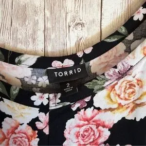 Torrid Black Floral Challis Trapeze Dress Pockets