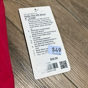 NWT Lululemon Hotty Hot High-Rise Lined Short 4"