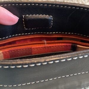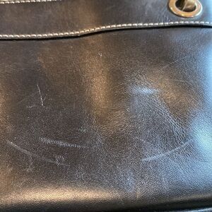 Super cute black leather bag with magnetic closure. In good used condition. Some scuff marks on the leather from use. Totally functional!!