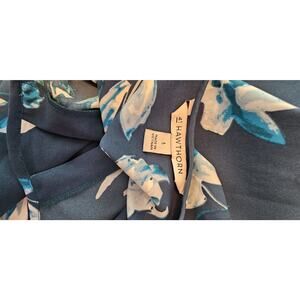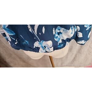 41 Hawthorn Stitch Fix Top Deep Teal Blue Floral Blouse Popover Pleat Front LRG