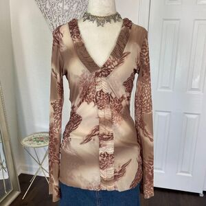 Sweet Pea Collection Early 2000's Brown Tan Grunge Tattoo Mesh Long Sleeve L