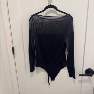 Chic black bodysuit with soft mesh sheer long sleeves. Perfect for concerts and nights out. Very comfortable, slim fit.