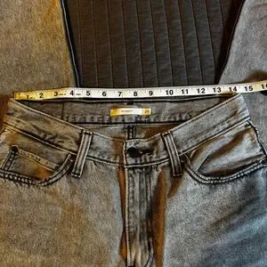 Brand new, washed in cold and hung to dry, only worn one time and decided they weren’t for me. Grey denim with black stitching. Close up pic that includes the waist measurement shows the true color of the jeans. Inseam 31”. No flaws. Purchased directly from Levi’s.