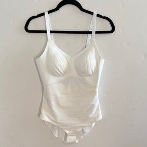 Popular Honeylove white shape-wear bodysuit. Smooth and supportive design. Adjustable straps, built-in bra, targeted x-compression and double knit panels. Hook and eye snaps at the gusset allows for customized torso length. Silicon grippers holds the brief in place. I carefully pack and ship all items same day or ASAP. Offers welcome.