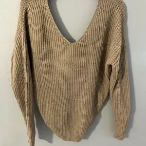Stay stylish and cozy with this women's knitted sweater featuring a chic knot back design. Perfect for any casual outing. Darker than in stock photo.