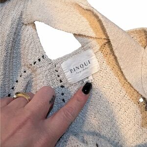 Stay cozy and stylish with this cream V-neck knit sweater. Perfect for layering and adding a touch of elegance to any outfit.