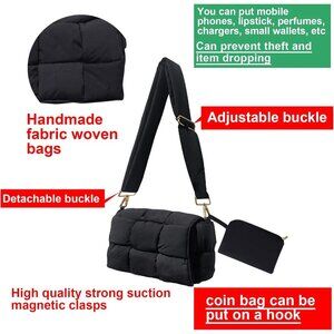 Features: This bag features a simple yet chic shape with padded fabric stripes woven into the classic bag silhouette. It’s super lightweight and comfortable to carry, perfect for everyday use. The magnetic fold-over closure keeps your belongings secure, and the adjustable, detachable shoulder strap offers versatile styling options. Comes with a handy coin organizer small bag for extra organization.