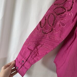 New Sundance Blouse Women's Small Pink Embroidered Lace Button Up Long Sleeve