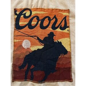 Own a piece of Americana with this Coors graphic sweatshirt, showcasing a striking Western scene. The vibrant tapestry-style graphic captures a lone cowboy on horseback silhouetted against a fiery sunset, a classic motif that evokes the spirit of the open range. Its comfortable crewneck design and long sleeves make it perfect for layering or wearing on its own, offering a relaxed fit that's ideal for casual outings. Imagine yourself sporting this unique piece on a cool evening bonfire or during a laid-back weekend gathering.