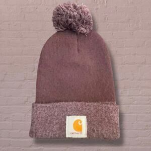 Carhartt Mauve Purple Pom Beanie Watch Hat Unisex Cuffed Knit Winter Ski 100111, 100% Acrylic, Holiday, Vacation, Gifts
