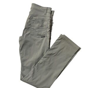 Lightweight, durable prAna Brion Slim Fit Pants in a versatile light gray color. Designed for comfort and mobility, perfect for travel, hiking, and everyday wear.