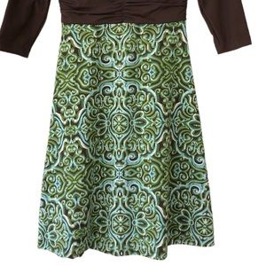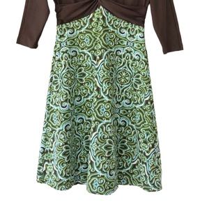 Title Nine | V-Neck Green Brown 3/4 Sleeve Athletic Dress XS Sporty