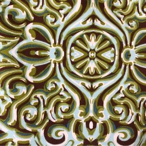 Brown bodice with green, brown & turquoise blue skirt