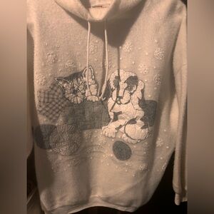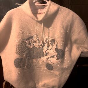 Vintage Cream soft winter cat Snowflake fuzzy Hoodie by Locker Shop size Medium