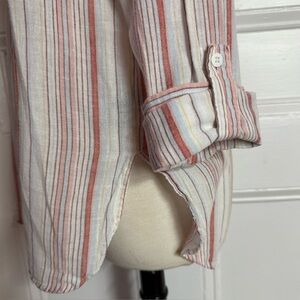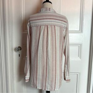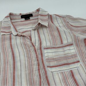 Sanctuary Women’s Cotton Linen Blend Striped Pull Over Shirt pink Cream Small