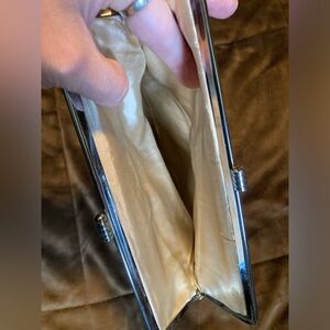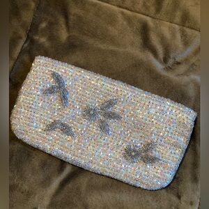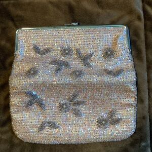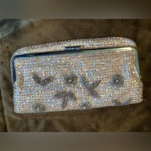 Gorgeous vintage looking beaded and sequined clutch. Pretty iridescent looking. Would be so lovely for a wedding or special occasion. Please see photos for any imperfections.