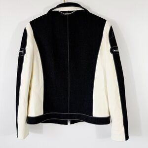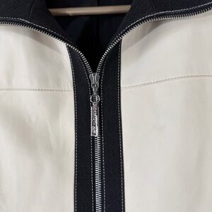 St. John Sport Cream Leather Jacket Black Detail Size Small