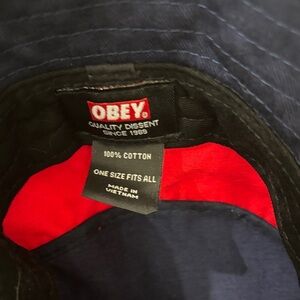 Bold bucket hat by Obey. Red and black design with embroidered logo. Tag says one size, but has a smaller fit overall.