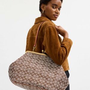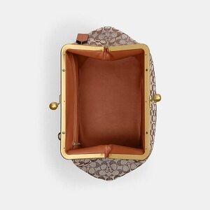 • Structured shape, detachable shoulder strap, gold-toned hardware, one main compartment, one interior zip pocket, interior embossed logo, all-over monogram pattern, all-over crystal embellishments