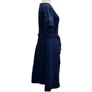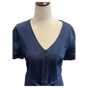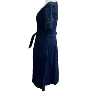 Liz Claiborne Blue Jean Dress Size 4 Short Sleeve Fit And Flare Dress V Neck Tie