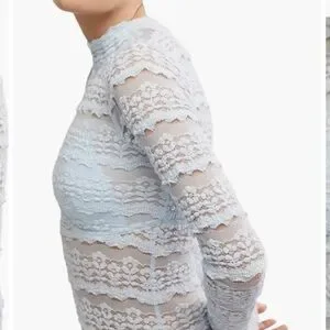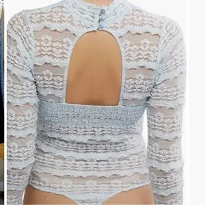 Free People Angelina Floral Lace Detail Bodysuit Size:S Color: Light Blue NWOT