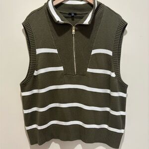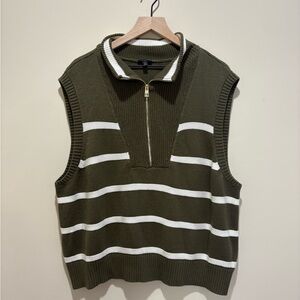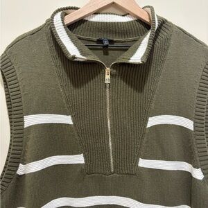 Talbots Plus 1/4 Zip Women’s Striped Sleeveless Sweater