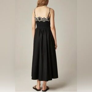 Chic black midi dress by J. Crew. Features white floral accents on the neckline. Perfect for versatile styling. A-line silhouette. New with tag
