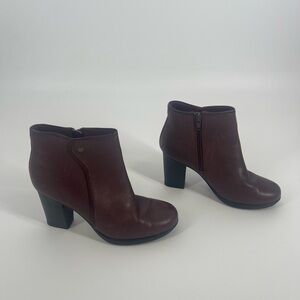 Clarks Halia Perch Burgundy Leather Ankle Booties 6.5M Comfy Red Boots (SB4#5)