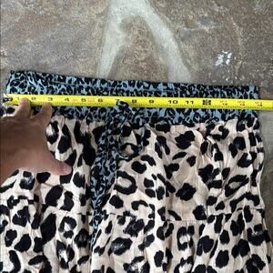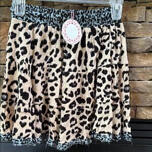 Umgee Leopard Print Skirt relaxed fit tiered tan black gray drawstring NWT