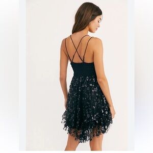 Free People Adella Sequin Slip sequin Dress Black.