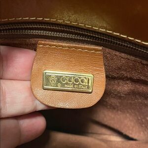 Logo: It features an oval emblem with the interlocking "G" logo on the front flap closure. This style of logo was prevalent in the 1970s. Authentic Gucci logos from this era are known for their specific font and precise detailing.