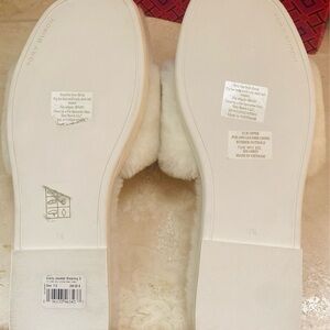 RARE LIKE NEW! Tory Burch Jeweled Shearling Slide Slippers Shoes Buttermilk