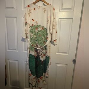 Embrace elegance with this floral kimono robe in green and cream. Perfect for a touch of sophistication in your loungewear collection.