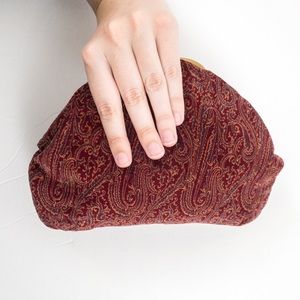 red brown orange formal boho catch all wallet change coin hippy hippies prairie 70s elegant vtg stocking stuffer gift carpet gypsy vtg prairie artsy funky anthropologie ooak rare unique etro pouch case