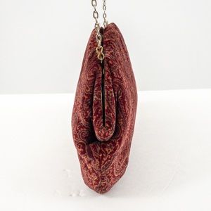 Vintage 70s Velvet Paisley Print Bag Purse Red